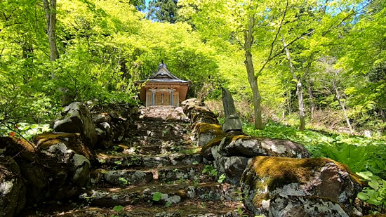 池の木造橋を渡ると再び石段があって登りきるところへ仏堂?がありました。