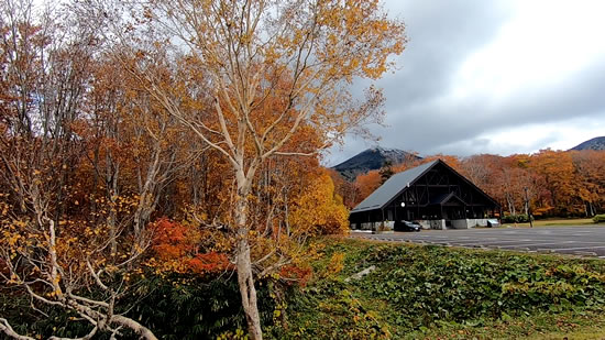 酸ヶ湯温泉前の駐車場からの紅葉も眺め、